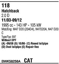 Система выпуска ОГ ► Для автомобилей с катализатором; Г. вып. от - 03/2007; Г. вып. до - 12/2011; Число дверей - 3/5; код двигателя - N47; тип модели - E87LCI |