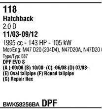 Система выпуска ОГ ► Для автомобилей с фильтром копоти; Г. вып. от - 03/2007; Г. вып. до - 12/2011; Число дверей - 3/5; код двигателя - N47; тип модели - E87LCI |