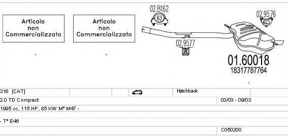 Система выпуска ОГ ► Г. вып. до - 09/2003; код двигателя - M47N204D4; Число дверей - 3; тип модели - Compact; Выхлопная система - Euro 3 |
