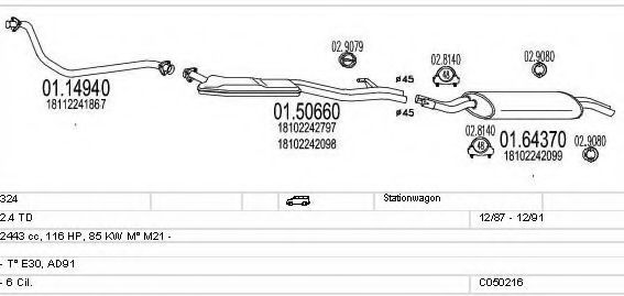 Система выпуска ОГ ► Г. вып. до - 09/1988; код двигателя - M21 (Multi Point Inj; тип модели - E30 AD91-AD01AH91-AH |