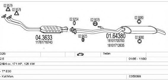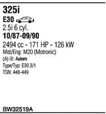Система выпуска ОГ ► Раб. объем (округленный) - 2,5; вар. оснащения - Sedan; Число дверей - A; Г. вып. до - 11/1990; раб. объем (точн.) - 2494; тип модели - E30; мощность - 126 |