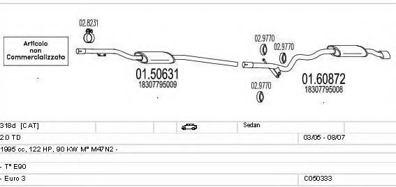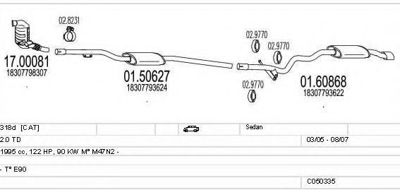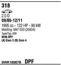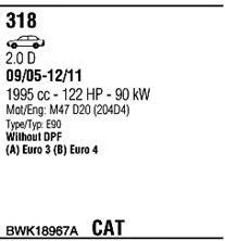 Система выпуска ОГ ► Раб. объем (округленный) - 2; тип модели - E90; вар. оснащения - Sedan; Число дверей - B; Г. вып. до - 08/2007; раб. объем (точн.) - 1995; код двигателя - M47N2; Исполнение днищевой планки - Kat; мощность - 90 |