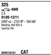 Система выпуска ОГ ► Г. вып. от - 10/2005; Г. вып. до - 08/2008; код двигателя - N52 B25 A; тип модели - E90 |