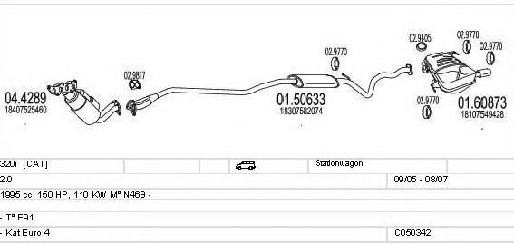 Система выпуска ОГ ► Раб. объем (округленный) - 2; вар. оснащения - Stationwagon; Г. вып. до - 08/2007; раб. объем (точн.) - 1995; код двигателя - N46B; тип модели - E91; Исполнение днищевой планки - Kat; мощность - 110 |