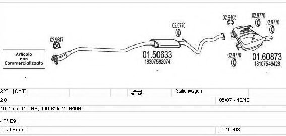 Система выпуска ОГ ► Раб. объем (округленный) - 2; вар. оснащения - Stationwagon; Число дверей - A; Г. вып. от - 06/2007; Г. вып. до - 10/2012; раб. объем (точн.) - 1995; код двигателя - N46N; тип модели - E91; Исполнение днищевой планки - Kat; мощность - 110 |