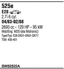 Система выпуска ОГ ► код двигателя - M20 (eta Motronic); тип модели - E28 DK51-DK61-DK71 |