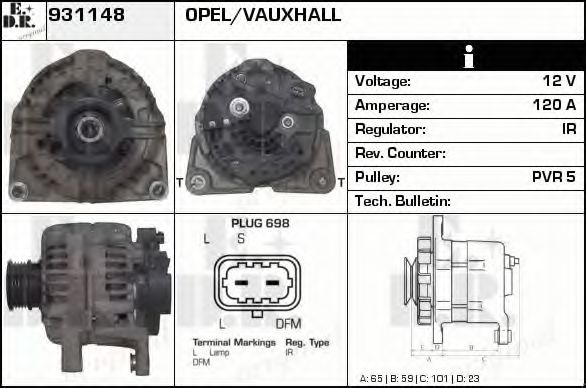 ток зарядки от генератора (А): 120 Идентификационный номер исполнения штекерного разъема: Plug 698 Количество ребер: 5 |
