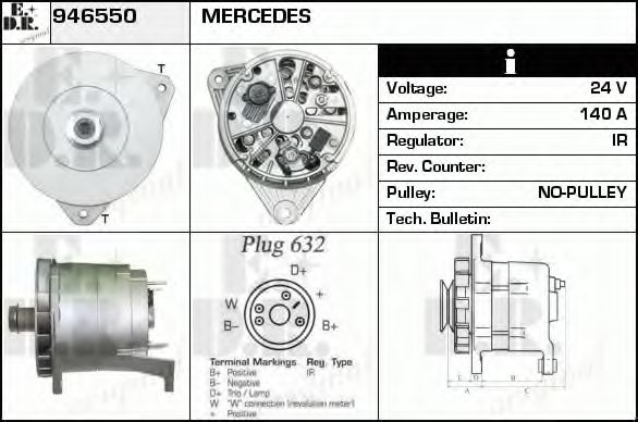 ток зарядки от генератора (А): 140 Идентификационный номер исполнения штекерного разъема: 632 |