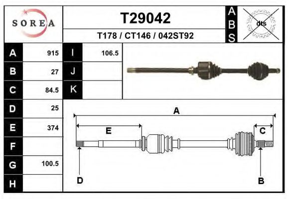 Внешнее зацепление со стороны колеса: 27 Тормозная динамика / динамика движения: Для автомобилей без ABS Внешнее зацепление со стороны дифференциала: 25 |