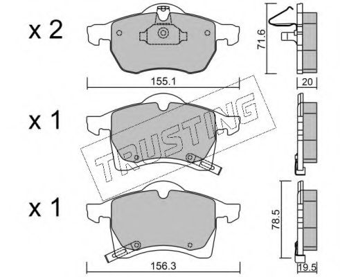Показати більше властивостей (7) Ширина 1 [мм]: 155,1 Высота 1 [мм]: 71,6 Толщина 1 [мм]: 19,5 Ширина 2 [мм]: 156,3 Высота 2 [мм]: 78,5 Толщина 2 [мм]: 19,5 Датчик износа: С звуковым предупреждением износа проверочное значение: ECE R90 APPROVED Колебания: С амортизатором колебаний |