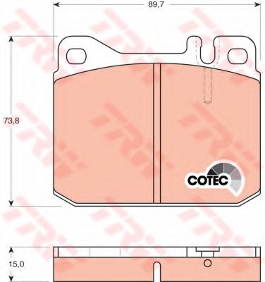 Датчик износа: Подготовлено для датчика износа колодок Высота [мм]: 73,8 Длина [мм]: 89,7 Толщина [мм]: 15 |