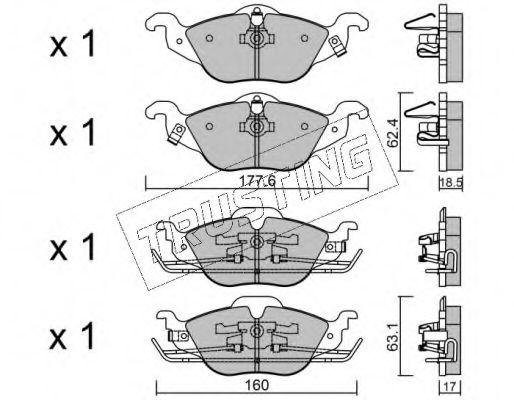 Показати більше властивостей (7) Ширина 1 [мм]: 160 Высота 1 [мм]: 63,1 Толщина 1 [мм]: 17 Ширина 2 [мм]: 177,6 Высота 2 [мм]: 62,4 Толщина 2 [мм]: 18,5 Датчик износа: С звуковым предупреждением износа проверочное значение: ECE R90 APPROVED Колебания: С амортизатором колебаний |