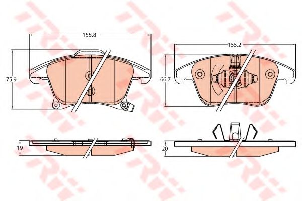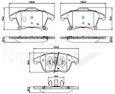 Показати більше властивостей (7) Длина [мм]: 155,8 Толщина [мм]: 19 Высота [мм]: 75,9 Длина 2 [мм]: 155,2 Толщина 2 [мм]: 20 Высота 2 [мм]: 66,7 Датчик износа: С звуковым предупреждением износа Количество датчиков износа [на ось]: 2 Опції: С пленкой для оклеивания / С пружиной |