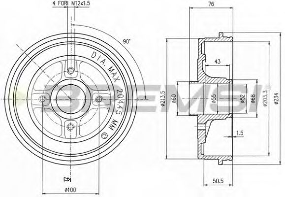 Макс. размер расточки тормозного барабана [мм]: 203,5 Внутрен. высота торм. барабана [мм]: 50,5 Количество отверстий: 4 ? фаски 2 [мм]: 100 |