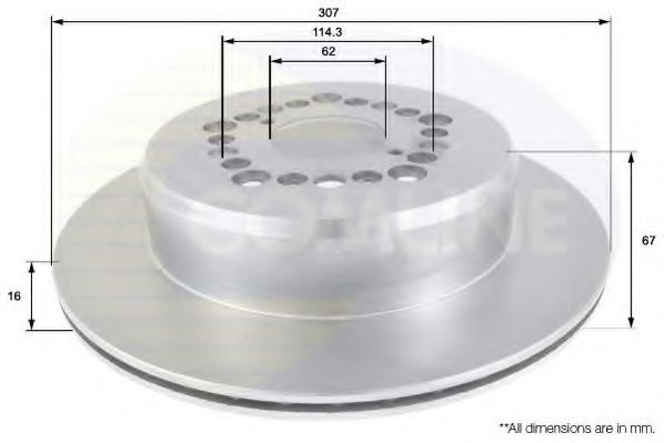 Диаметр [мм]: 307 Толщина тормозного диска (мм): 16 Минимальная толщина [мм]: 15 Количество отверстий: 5 |