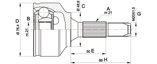 Внешнее зацепление со стороны колеса: 21 Внутренне зубчатое соединение со стороны колеса: 21 Диаметр прокладки [мм]: 48,8 Наружный диаметр [мм]: 76,4 |