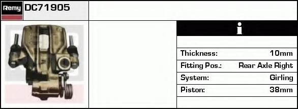 Тип тормозного суппорта: Автоматическая регулировка / Суппорт тормоза (1 поршень) Толщина тормозного диска (мм): 10 Диаметр поршня цилиндра [мм]: 38 |