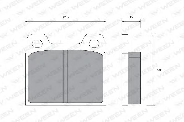 Толщина [мм]: 15 Длина [мм]: 61,7 Высота [мм]: 56,5 Датчик износа: Не подготовленно для датчика износа |
