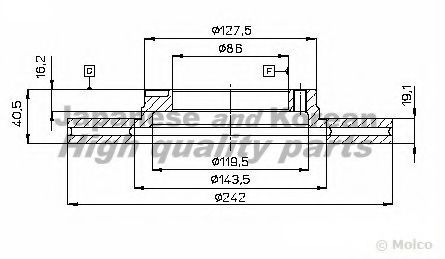 Показати більше властивостей (3) Толщина тормозного диска (мм): 19,1 Диаметр [мм]: 242 ? фаски 2 [мм]: 104 Количество отверстий: 4 Сторона установки: Передній міст |