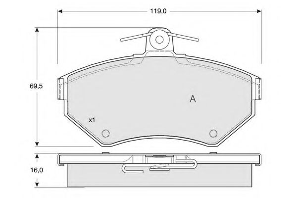 Толщина [мм]: 16 Длина [мм]: 119 Высота [мм]: 69,5 Датчик износа: Не подготовленно для датчика износа |