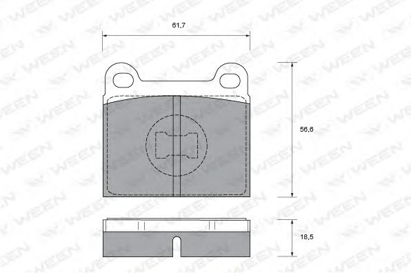 Толщина [мм]: 18,5 Длина [мм]: 61,7 Высота [мм]: 56,6 Датчик износа: Не подготовленно для датчика износа |