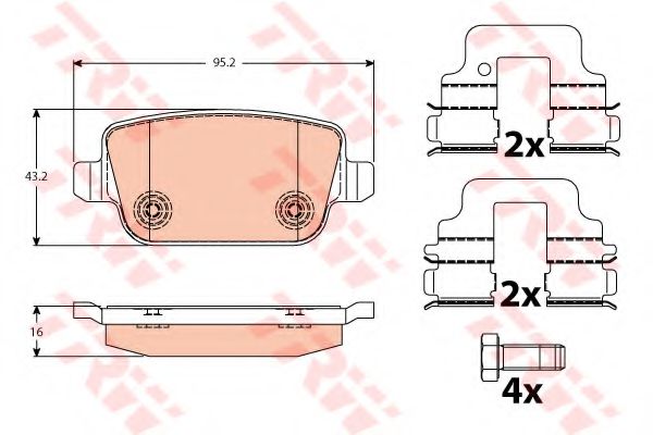 Показати більше властивостей (4) Длина [мм]: 95,2 Высота [мм]: 43,2 Толщина [мм]: 16 Датчик износа: Не подготовленно для датчика износа Опції: С винтами тормозных сателлитов / З аксесуарами проверочное значение: E9 90R - 01120/1678 |
