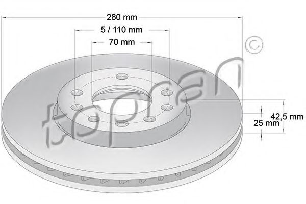 Показати більше властивостей (7) Тип тормозного диска: Вентильований Наружный диаметр [мм]: 280 Диаметр ступицы [мм]: 150 ? отверстия ступицы [мм]: 70 Толщина тормозного диска (мм): 25 Высота [мм]: 42,5 Число отверстий в диске колеса: 5 ? фаски 2 [мм]: 110 Поверхность: З покриттям |
