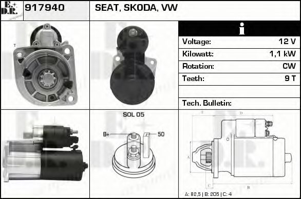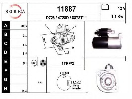 Напряжение [В]: 12 Мощность стартера [кВт]: 1,1 |