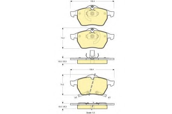 Датчик износа: Подготовлено для датчика износа колодок Высота [мм]: 74,2 Длина [мм]: 156,4 Толщина [мм]: 19,5 |