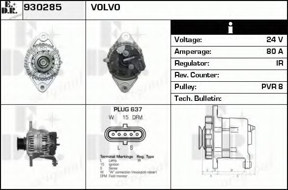 ток зарядки от генератора (А): 80 Идентификационный номер исполнения штекерного разъема: PLUG637 Количество ребер: 8 |