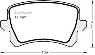 Толщина [мм]: 17 Ширина (мм): 105,5 Высота [мм]: 56 Датчик износа: Подготовлено для датчика износа колодок |